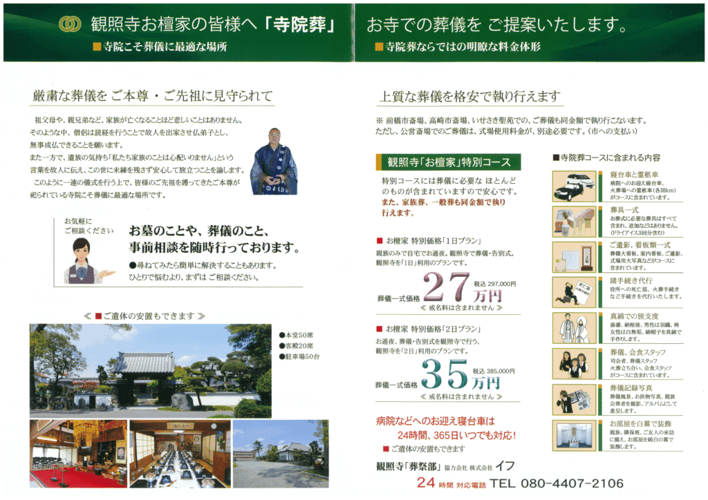 観照寺では、檀家の皆さまに向けて、必要な内容をすべて含んだ「特別プラン」をご用意しています。